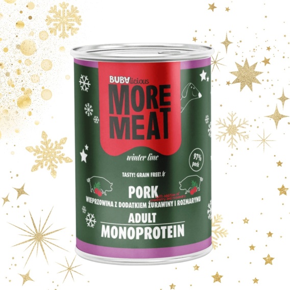 BUBAlicious Wieprzowina z żurawiną i rozmarynem – naturalna, bezzbożowa karma mokra dla psa. 400 g smaku i zdrowia w jednej puszce!