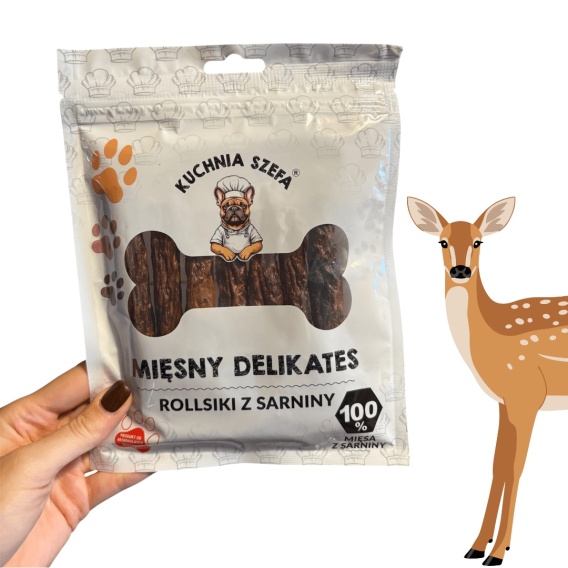 Kuchnia Szefa Rollsiki z sarniny to pyszne, naturalne cygara do żucia dla psów, stworzone z najwyższej jakości mięsa mięśniowego z sarny. Każdy rollsik to długi, chrupiący przysmak o intensywnym aromacie dziczyzny, który zaspokoi potrzebę żucia i gryzienia nawet najbardziej wymagających psów.