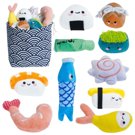Interaktywna zabawka węchowa w formie torby sushi z rybkami i rolkami. Idealna do ukrywania przysmaków i treningu nosa Twojego psa!