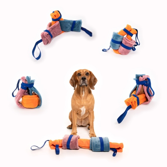 Każdy pas został zaprojektowany z myślą o psiej ciekawości – zawiera różnego rodzaju kieszonki, schowki i zakładki, które zachęcają psa do węszenia i szukania smaczków. To nie tylko zabawa, ale także doskonała stymulacja umysłowa, która pomaga redukować stres i nudę, a jednocześnie wspiera naturalne instynkty węchowe.