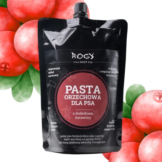 Zadbaj o smak i zdrowie Twojego psa – wybierz ROGY Masło Orzechowe z Żurawiną!