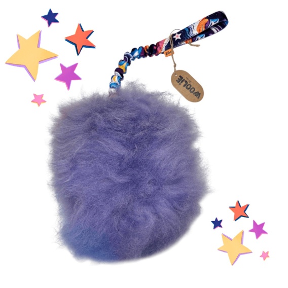 Kosmiczny Szarpak WoolieWhillie to ręcznie robiona zabawka z naturalnej skóry owczej, ozdobiona futrem w kolorze jagodowym i wyposażona w amortyzowaną rączkę z motywem kosmosu. Ten wyjątkowy szarpak zachwyci każdego psa – od szczeniaka po prawdziwego sportowca.